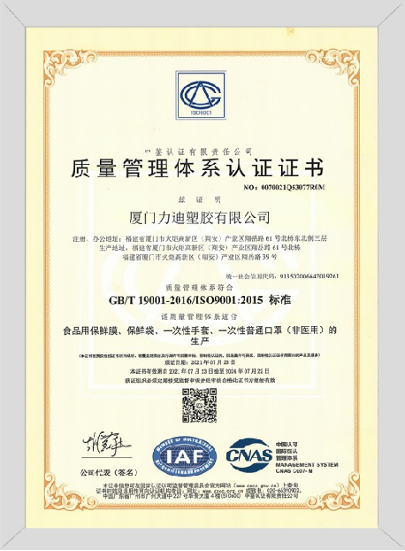 廈門(mén)力迪塑膠有限公司,成立于2005年是一家產(chǎn)業(yè)鏈完整、已有專(zhuān)業(yè)研發(fā)設(shè)計(jì)團(tuán)隊(duì)、生產(chǎn)、銷(xiāo)售及品牌運(yùn)營(yíng)為一體的現(xiàn)代化企業(yè)。公司主營(yíng):一次性餐飲耗品與一次性醫(yī)療耗品;具體產(chǎn)品有:一次性PE手套、保鮮袋、保鮮膜、環(huán)保垃圾袋、纏繞膜、PS航空杯、紙杯、錫紙以及醫(yī)用防護(hù)口罩,醫(yī)用外科口罩,醫(yī)用創(chuàng)可貼,醫(yī)用敷貼,醫(yī)用手套等一次性耗品。車(chē)間按照國(guó)家“QS標(biāo)準(zhǔn)化進(jìn)行規(guī)劃設(shè)計(jì),運(yùn)營(yíng)面積達(dá)35000+平方米,擁有專(zhuān)業(yè)生產(chǎn)線(xiàn)400余條,月產(chǎn)量3900余噸。